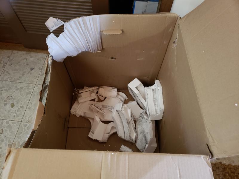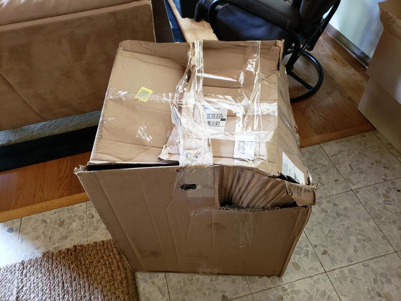 Spin basket arrived in a box that had gotten ripped open, and it looked like someone had made a crude attempt to tape it back together. Once I opened it I realized why. The basket was in a box twice its size with almost no cushioning. There was one slab of Styrofoam on the bottom that had crumbled into about 100 pieces, but no other support whatsoever. The basket had obviously bounced around inside the box ALOT. I can't put this on the courier...a $240 product should have been packaged much better.