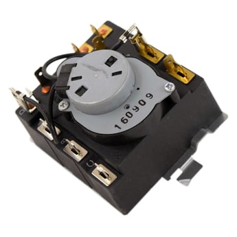 Timer WE04X24551 controls the electrical components and the duration of the dryer cycles.