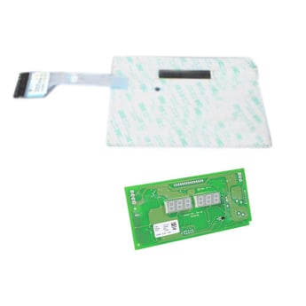 Dispenser control board and panel assembly W10740217 controls water and ice dispenser operations in the refrigerator door.