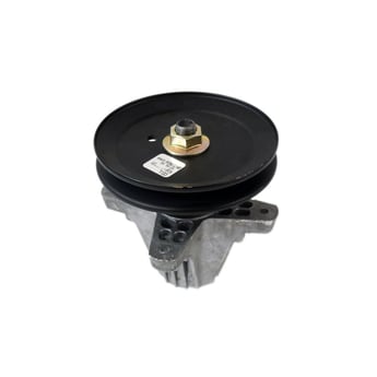 Mandrel and pulley assembly 918-06976A provides support for the pulley shaft and spins the blade on the mower deck of the lawn tractor. The assembly includes the mandrel shaft, bearings, mandrel housing and pulley.
