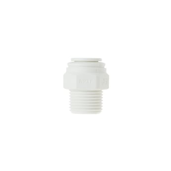 Storage tank fitting WS22X10044 connects the storage tank water line to the filter housing. This fitting is 3/8-inch by 3/8-inch MNPT.